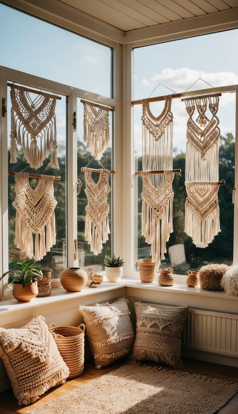 Hanging a macrame piece near windows can create a beautiful light effect. The fabric allows sunlight to filter through, making your sunroom feel bright and inviting.